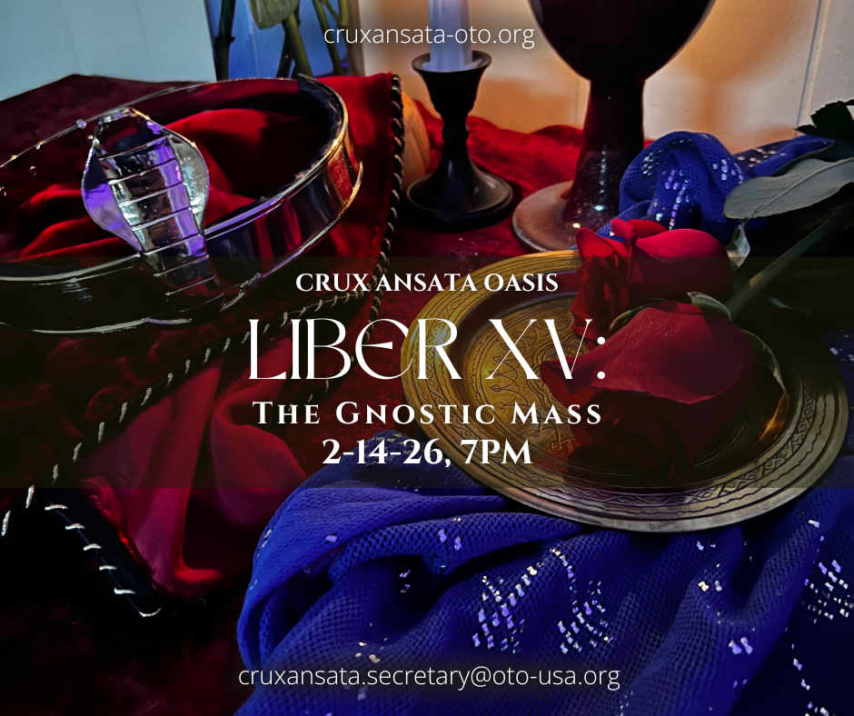 You are invited to Crux Ansata’s monthly celebration of Liber XV: The Gnostic Mass. The doors will be locked and ritual will begin at 7 PM, so please arrive around 6:30 to be included in the headcount.
